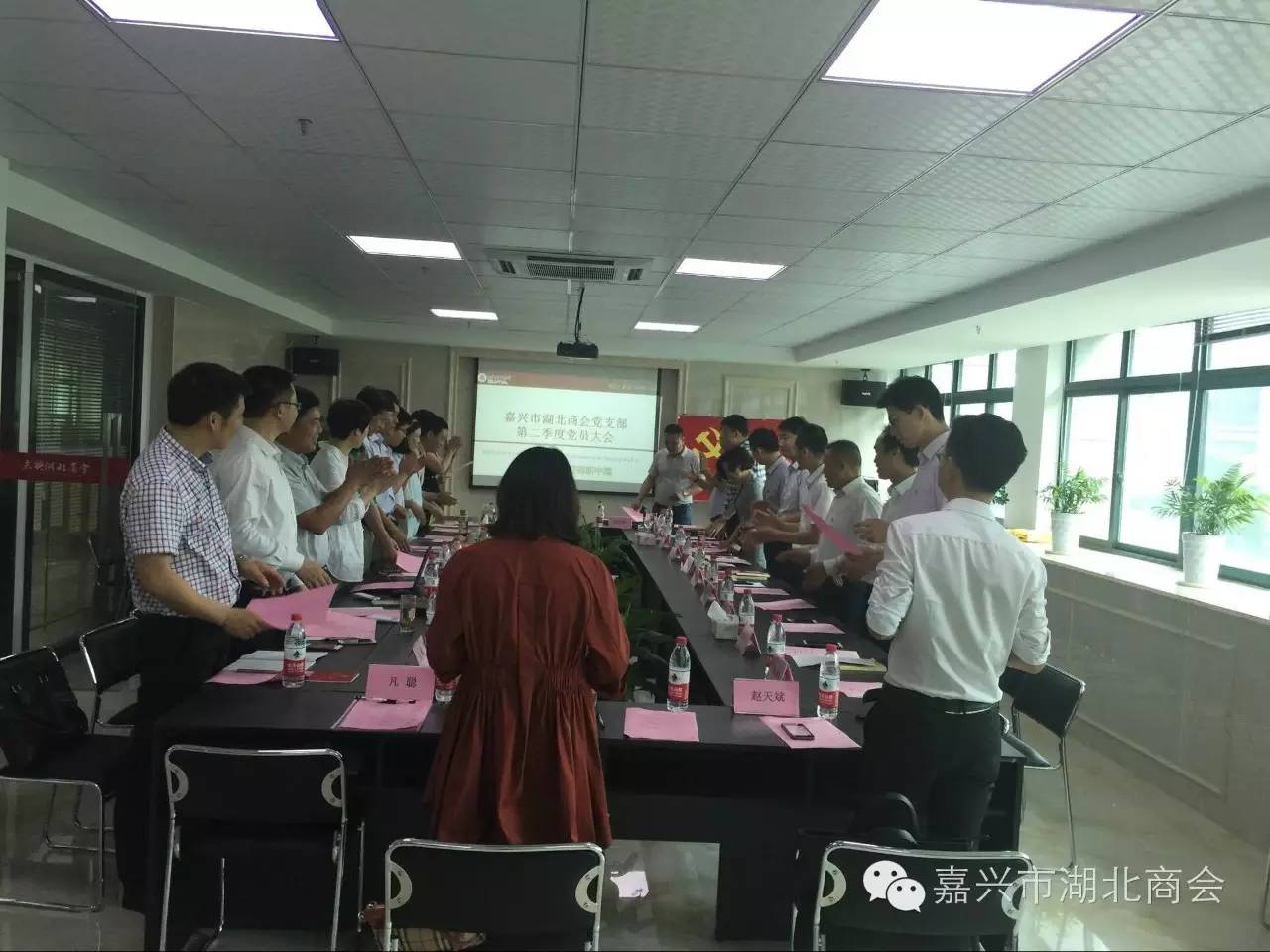 6月28日,纪念建党95周年暨嘉兴市湖北商会第二季度党支部党员大会在商会会议室隆重举行,嘉兴市工商联行业协会商会党委领导印惠丽、嘉兴市粮食局副局长屈达贵,商会党支部成员以及邀请秘书长李泽琼等30余人参加本次大会,会议由商会党支部书记邓建军主持。