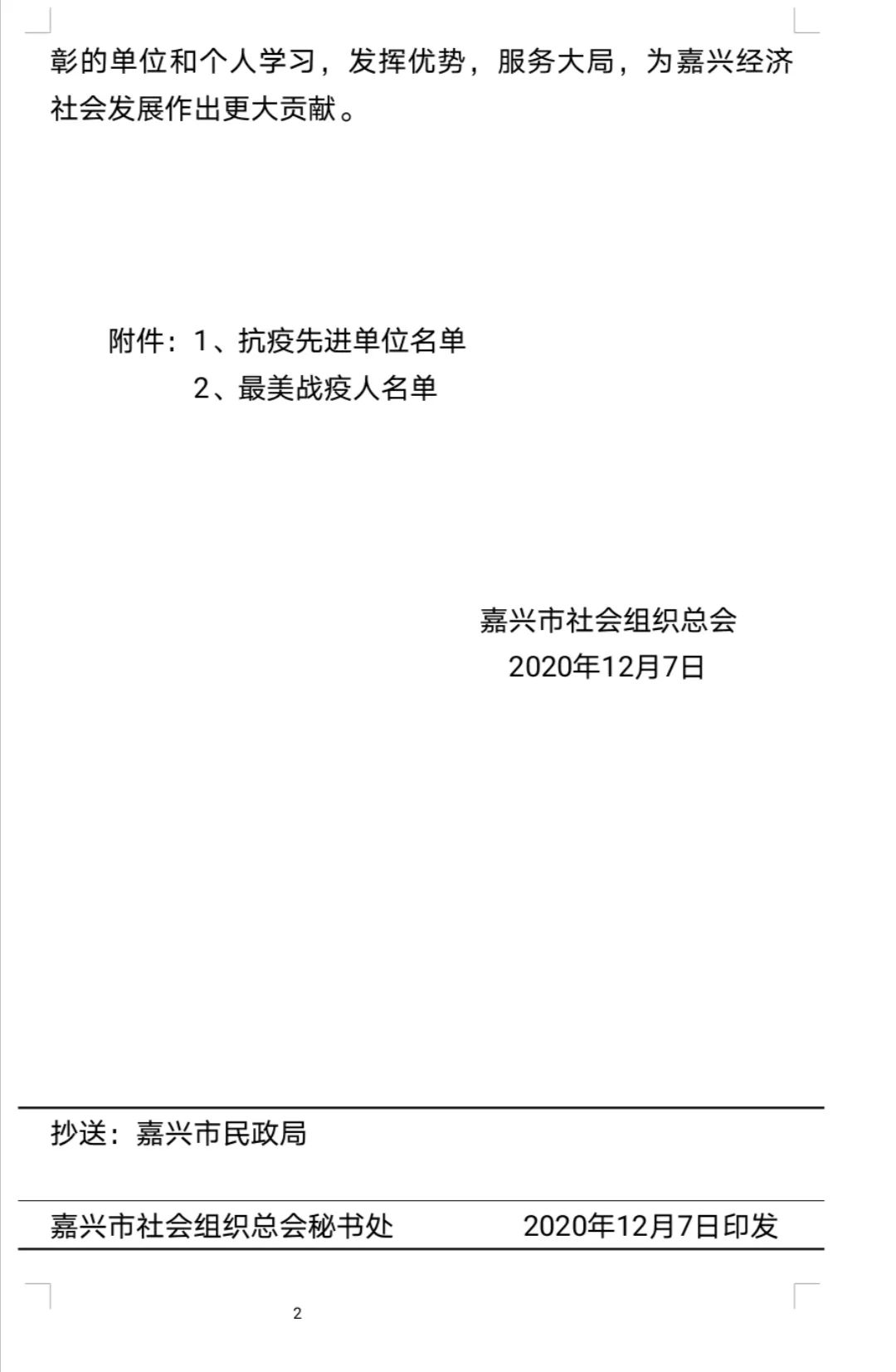 【元旦祝福】嘉兴市湖北商会祝您元旦快乐,牛年大吉!2020-12-31【疫情防控】致嘉兴市湖北商会全体会员倡议书2021-01-07 喜 報 🎊 热烈庆祝 🎊 嘉兴市湖北商会 荣获“抗疫先进单位”荣誉称号 副秘书长王董铭 荣获“最美战疫人”荣誉称号 —嘉兴市社会组织总会— 近日,在嘉兴市社会组织总会关于表彰“抗疫先进单位”和“最美战疫人”的决定中,嘉兴市湖北商会被授予“抗疫先进单位”,副秘书长王董铭被授予“最美战疫人”荣誉称号。 2020年是不平凡的一年,对于湖北商会来说更是比较特殊的一年。这一年,商会在全体会员的共同努力下,抗疫工作取得了显著的成绩,各项工作也圆满完成。未来前行的路上,我们将不忘初心、牢记使命,继续开拓创新,再创新的辉煌。 发表回复 取消回复您的邮箱地址不会被公开。 必填项已用 * 标注评论 * 显示名称 * 邮箱 * 网站 在此浏览器中保存我的显示名称、邮箱地址和网站地址,以便下次评论时使用。